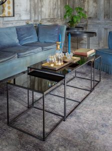A coffee table set, sleek and polished in dark shades for a sophisticated and sobre look ( Notre Maison).